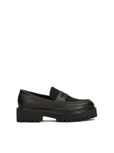 Wsuwane półbuty wykonane z wysokiej jakości naturalnej skóry to nowoczesna interpretacja klasycznego fasonu. Głęboki odcień czerni podkreśla minimalistyczną formę obuwia. Charakterystycznym elementem modelu jest efektowna wstawka z naturalnego włosia umieszczona na podbiciu – dodatek, który w subtelny sposób wyróżnia buty i nadaje im wyrafinowanego, modowego charakteru. Solidna, masywna podeszwa z wyraźnym bieżnikiem gwarantuje komfort i stabilność podczas codziennego użytkowania, a zarazem wprowadza nowoczesną, lekko surową estetykę. Starannie wykończony fason z lekko zaokrąglonym noskiem idealnie wpisuje się zarówno w casualowe, jak i bardziej formalne stylizacje. To model dla kobiet, które poszukują oryginalnych akcentów w klasycznej formie – elegancji z nutą współczesnej odwagi.