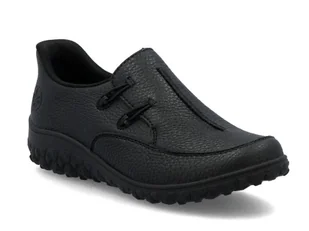 Półbuty damskie Rieker 59559 – czarne, szerokie wsuwane Skórzane, czarne półbuty damskie Rieker to propozycja dla najbardziej wymagających kobiet, które ceni...