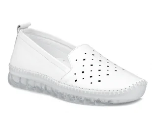 Półbuty damskie skórzane wsuwane białe ażurowe Loretta Vitale 101-38