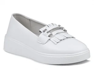 Półbuty damskie skórzane wsuwane na platformie białe S.BARSKI LR590-37