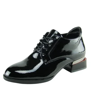 Nowy Półbuty damskie lakierowane VINCEZA 58160 Kolor: Czarny Półbuty damskie marki VINCEZA to wygodne, eleganckie buty, które zapewnią komfort noszenia od wiosny, aż po jesień. Wykonane z wysokiej jakości lakierowanej skóry ekologicznej. Wkładka wykonana z eko skóry. Metalowa wstawka w obcasie nadaje butom wyjątkowej elegancji.