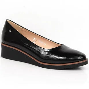 Vinceza 58267 damskie półbuty na koturnie czarne lakierki