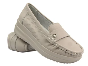 Półbuty, mokasyny damskie ze skóry naturalnej - Vinceza 87990, beżowe