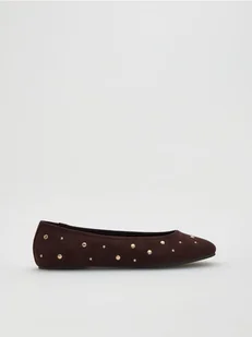 Buty typu baleriny, wykonane z imitacji zamszu.