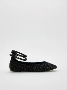 Reserved - Baleriny z metaliczną nitką - czarny