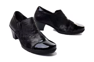 Półbuty damskie Rieker 59559 skórzane szerokie czarne wsuwane tęgość H-42