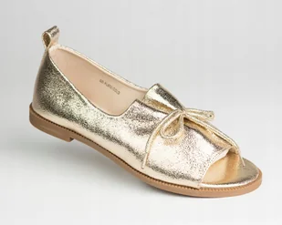 Sandały damskie półbuty GOODIN GD-FL859 skóra eko złote lekkie wsuwane 36 Przepiękna propozycja klasycznych sandałków marki GOODIN. Buciki wykonane z najwyższej jakości skóry ekologicznej. Cholewka została ozdobiona sznureczkiem zawiązanym w kokardę. Nosek w bucie jest wycięty. Wkładka w prezentowanym obuwiu wykonana jest ze skóry naturalnej.