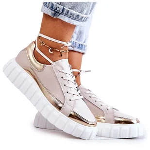 S. Barski Damskie Półbuty Na Platformie Beżowo-Złote Noriso be
