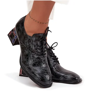 Skórzane Lakierowane Półbuty Damskie Na Obcasie Z Kryształkami Artiker 57C0072 Szare-40