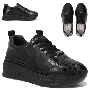 SKÓRZANE Sneakersy Damskie FILIPPO Platforma Czarne Eleganckie Lakier 41