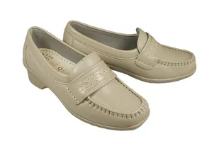 Półbuty/mokasyny damskie. Obuwie na stopy wrażliwe. Naturalna skóra. Specjalna wkładka. Podwyższona tęgość. Wygodny obcas.