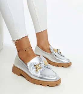 Srebrne mokasyny Bogumila to popularny wybór dla osób ceniących sobie nowoczesny styl. Mają okrągły nosek, metaliczny połysk i ozdobną agrafkę, która dodaje ...