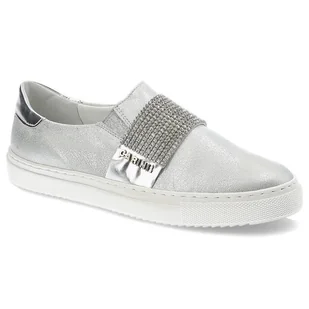 Bia��e srebrne sneakersy Carinii B6020-187 sk��ra siatka r.39