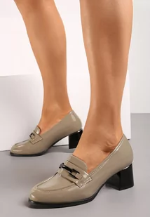Szare Lakierowane Półbuty ze Skórzaną Wkładką na Słupku z Metalową Klamrą Fondaria