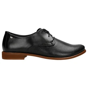 Wojas Czarne Eleganckie Oksfordki Damskie Z Perforowaną Skórą