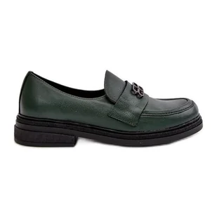 Zazoo 20174 Skórzane Eleganckie Półbuty Damskie Na Płaskim Obcasie Ciemnozielone. Sprawdź na butymodne. pl! Półbuty damskie Z