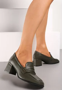 Zielone Półbuty na Niskim Słupku z Ozdobnym Paskiem i Kwadratowym Noskiem Porride