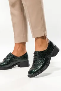 Zielone półbuty skórzane damskie lakierowane sznurowane wężowy wzór PRODUKT POLSKI Casu 591-38