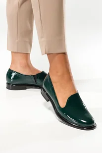 Zielone półbuty skórzane damskie lakierowane z wycięciami produkt polski casu 1831-38 - Casu