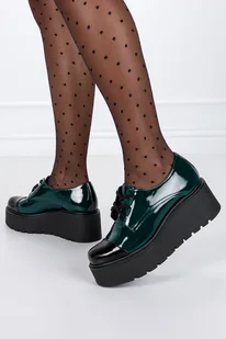 Zielone półbuty skórzane lakierowane damskie na platformie sznurowane PRODUKT POLSKI Casu 2562-600-628-40