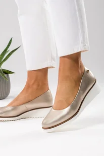 Złote półbuty skórzane damskie na koturnie PRODUKT POLSKI Casu 1346-708-41