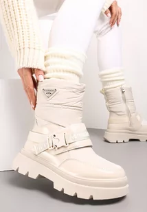 Beżowe Lakierowane Śniegowce z Ozdobnymi Taśmami Eraclio