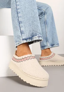 Beżowe Śniegowce na Grubej Podeszwie Ozdobione Haftem Zinnalora