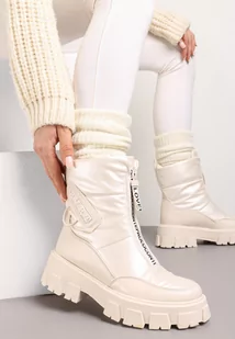 Beżowe Śniegowce z Ekoskóry z Ozdobnym Suwakiem i Napisem Veneria