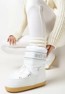 Białe Ciepłe Śniegowce na Platformie Ozdobione Napisem Menderia