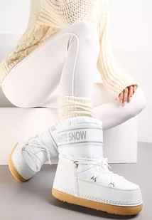 Białe Ocieplone Śniegowce Wsuwane z Ozdobnym Napisem i Sznurowaniem Nalissa