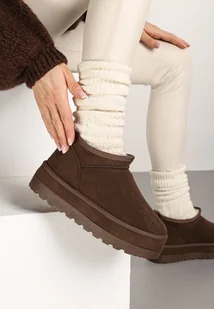 Brązowe Śniegowce Vices z Krótką Cholewką Ocieplone Futerkiem Grelfedi