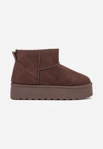 Brązowe Wsuwane Śniegowce z Imitacji Zamszu na Platformie Tusanala