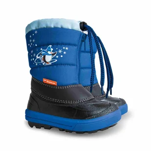 Chłopięce śniegowce idealne na zimowe szaleństwa na śniegu. Śniegowce są w kolorze niebieskim z nadrukiem przedstawiającym bałwanka. Zapinane są ekspres i dodatkowo posiadają ściągacz, który sprawi, że śnieg nie przedostanie się butów podczas zimowych szaleństw. Skład: Cholewka - poliester / Podeszwa – termokauczuk / Ocieplenie - dzianina futerkowa