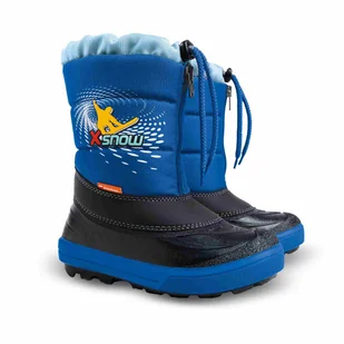 Chłopięce śniegowce idealne na zimowe szaleństwa na śniegu. Śniegowce są w kolorze niebieskim ze sportowym nadrukiem. Zapinane są ekspres i dodatkowo posiadają ściągacz, który sprawi, że śnieg nie przedostanie się butów podczas zimowych szaleństw. Skład: Cholewka - poliester / Podeszwa – termokauczuk / Ocieplenie - dzianina futerkowa