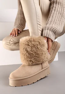 Ciemnobeżowe Śniegowce na Grubej Podeszwie Ozdobione Futerkiem Naolani