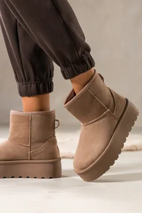 Ciemnobeżowe śniegowce mukluki damskie na bieżnikowanej platformie Casu 1941