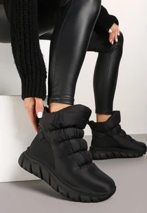 Czarne Pikowane Śniegowce na Grubej Tłoczonej Podeszwie Resita