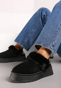 Czarne Śniegowce na Grubej Podeszwie z Elastycznym Paskiem i Futerkiem Sinathra