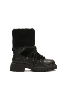 Czarne ocieplane trzewiki charakteryzują się eleganckim i funkcjonalnym designem. Dolna część cholewki wykonana jest z naturalnej skóry, która zapewnia trwałość, natomiast jej górna część wykończona jest syntetycznym futrem, dodającym obuwiu nie tylko ciepła, ale także stylowego i luksusowego wyglądu. Trzewiki wyposażone są w suwak, który ułatwia szybkie zakładanie i zdejmowanie, co jest praktyczne na co dzień. Dodatkowo posiadają sznurowanie, które pozwala na dokładne dopasowanie butów do stopy. Czarne trzewiki z kombinacją skóry i syntetycznego futra są stylowe, praktyczne i doskonałe na różne okazje.