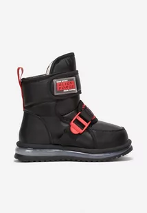 Czarno-Czerwone Śniegowce Sportowe na Rzepy Mocno Ocieplone Idimara