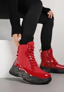 Czerwone Sznurowane Śniegowce VICES z Lakierowanymi Wstawkami i Tłoczeniami Reisanna