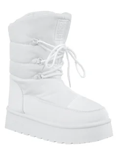 Damskie śniegowce firmy BIG STAR model: OO274886 kolor: biały Damskie śniegowce o sportowym charakterze są idealnym wyborem na jesienne/zimowe dni. Wykonane z wysokiej jakości materiałów. Wewnątrz ocieplone futerkiem które jest miękkie i przyjemne w dotyku.