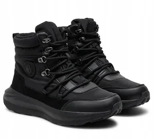 Damskie śniegowce firmy BIG STAR model: OO274A142 kolor: czarny Damskie śniegowce o sportowym charakterze są idealnym wyborem na jesienne/zimowe dni. Wykonane z wysokiej jakości materiałów tekstylnych, skóry ekologicznej oraz zamszowej. Wewnątrz ocieplone futerkiem które jest miękkie i przyjemne w dotyku.