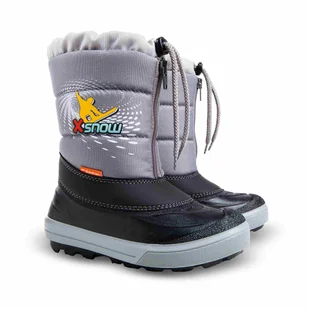 Dziecięce śniegowce idealne na zimowe szaleństwa na śniegu. Śniegowce są w kolorze szarym ze sportowym nadrukiem i dzięki swojej kolorystyce będą pasować zarówno dla chłopca i dziewczynki. Zapinane są ekspres i dodatkowo posiadają ściągacz, który sprawi, że śnieg nie przedostanie się butów podczas zimowych szaleństw. Skład: Cholewka - poliester / Podeszwa – termokauczuk / Ocieplenie - dzianina futerkowa