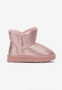 Różowe Śniegowce z Ekoskóry z Futerkiem i Wstążką z Napisem Vivence