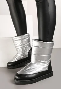 Srebrne Płaskie Śniegowce z Pikowaną Cholewką Kariti