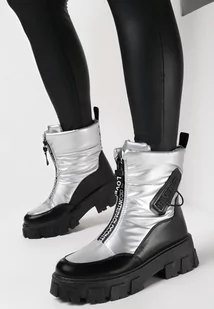 Srebrne Śniegowce na Płaskiej Podeszwie z Zamkiem z Przodu i Napisem Bulluna