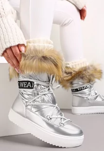 Srebrne Sznurowane Śniegowce Zdobione Futrem Volumnia