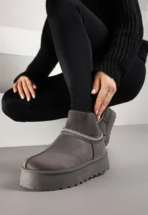 Szare Śniegowce na Grubej Podeszwie z Elastyczną Cholewką Nilevelia