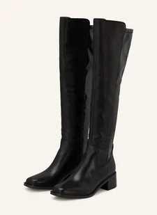 Gładka skóra i wysokiej jakości imitacja skóry. Częściowo elastyczna cholewka. Boczny zamek błyskawiczny. Zaokrąglony kwadratowy kształt. Obcas słupek o wyglądzie drewna warstwowego w tym samym kolorze.